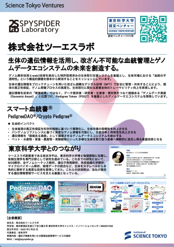 ツーエスラボ|スマート血統書 – 遺伝子データ × web3で血統を証明