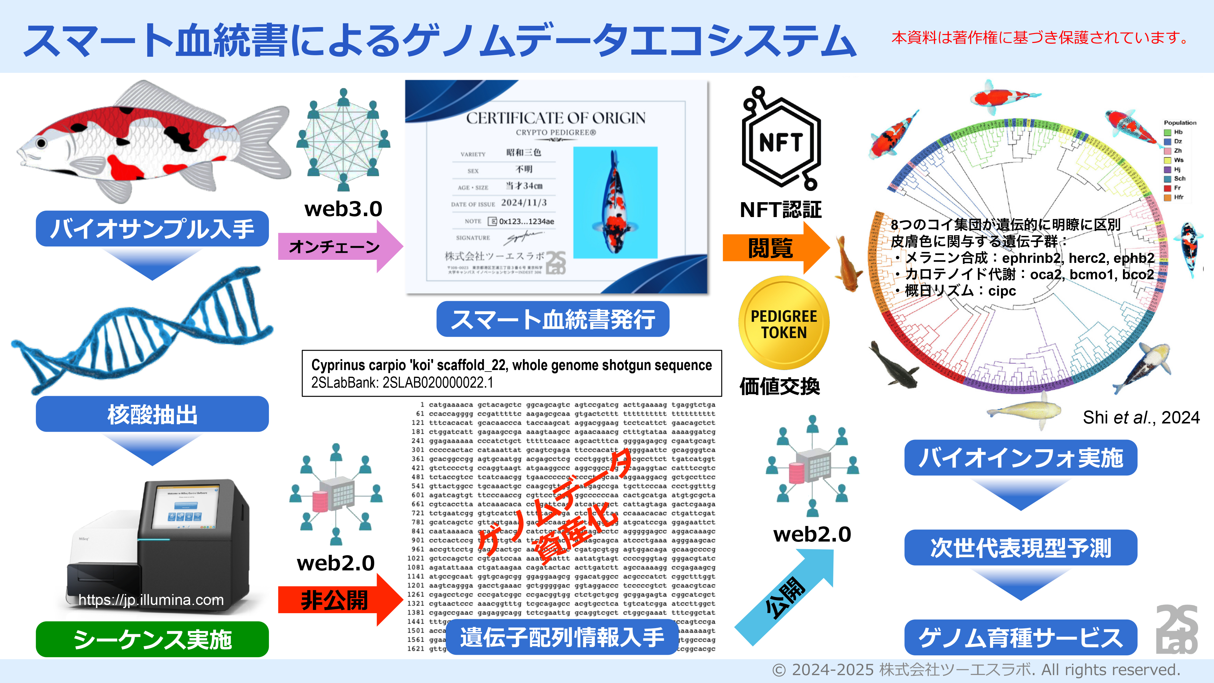 そこで、ツーエスラボは「売買する生体が紐付けられた遺伝情報を保有することを保証する取引を支援する仕組み」を世界に先駆けて実装します。